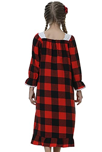 Girls' Flannel Classic Plaid Pajamas with Long Sleeve Nightgown Sleepwear Dress 3-13Years 7