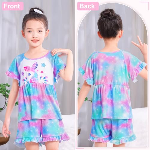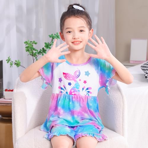 MHJY Girls Pajama Sets Ruffled Sleepwear Casual Sleeping Clothing 2pcs Flutter Sleeve Top and Shorts 5