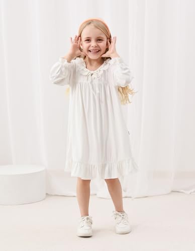 Toddler Girls Long Sleeve Nightgown Cute Ruffle Girl Sleepshirt Viscose from Bamboo Princess Sleepwear Pajamas 4