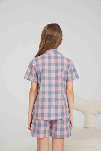 HiddenValor Girls Pajama Set, 2 Piece Cotton Button Down Short Sleeve Shorts Lounge Sleepwear With Pockets 6