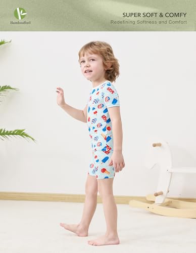 Boys Girls Pajama Set Toddlers 2 Piece Unisex Kids Pajamas Pjs Short Sleeve Snug Fit Rayon Sleepwear 2T-5T 4