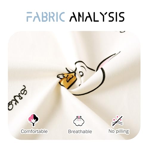 • 【Design】Girls 2 piece pajama sets, features on the short sleeve shirt a graphic of cute cartoon and straight-fit pants, classic v neck design and elastic waist pajama pants. Must-have nightgown for petite women girls in summer.