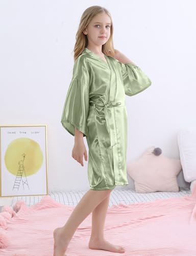 SEALINF Girls Kids Solid Color Silky Satin Kimono Robe for Wedding Spa Party, Short 4