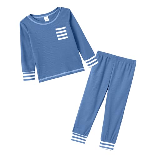 HOT ! IFFEI Waffle Knit Family Matching Pajamas Sets 2 Piece Lounge Set Long Sleeve Soft Loungewear Comfy Sleepwear with Pockets