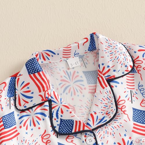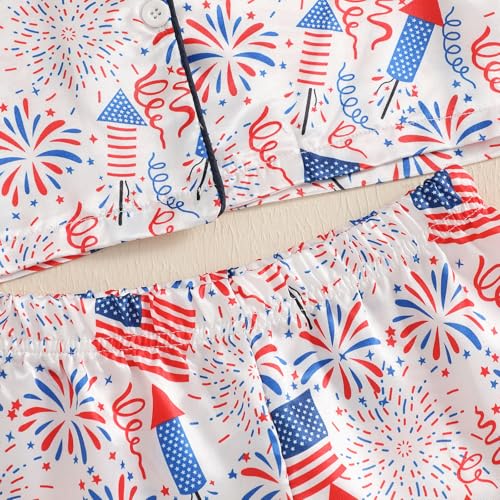 Toddler Girl 4th Of July Pajamas Cute Flag Short Sleeves Button Down Shirt Top Elastic Shorts Sleepwear 3