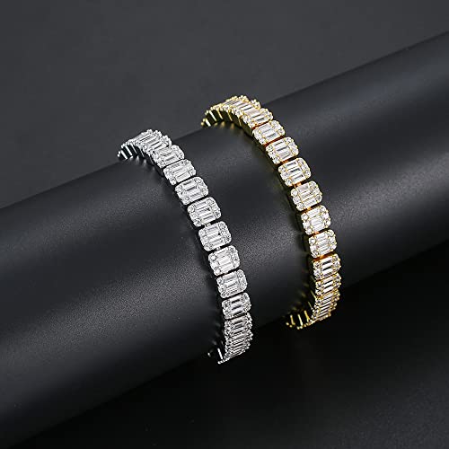 • 【Exquisite Design】The bracelet is inlaid with round-cut tiny moissanite and rectangular crystals, the perfect arrangement and combination, it is a tennis bracelet suitable for daily commuting, parties and other occasions, making you more dazzling in the crowd.