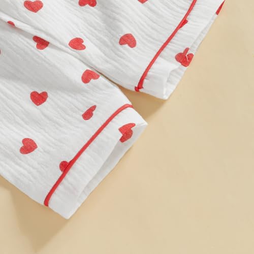 • Valentine's Pajamas: 2-Piece Valentine's pajamas set features cute heart printed, lapel collar, button-up pajamas set, baby girl long sleeve pajamas, elastic waist long pants pajamas for toddler baby girl boy.