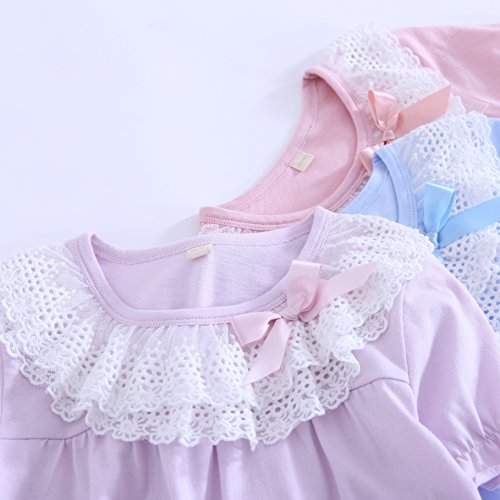Summer Girl's Lace Nightgowns Sleep Dress 100% Cotton Sleepwear for Girl (Blue(Short Sleeve), 14) 4