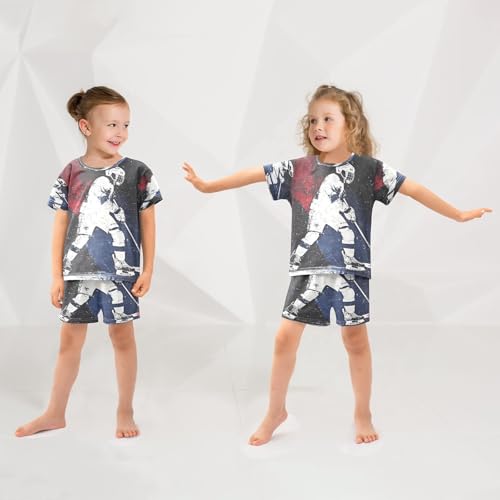 ALAZA Watercolor Ice Hockey Player Pajamas Set Short Sleeve Cotton Sleepwear Summer Pjs 2 Piece 5-14Y 5