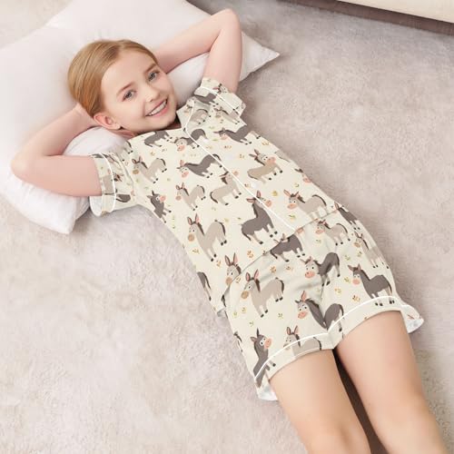 Cute Donkey Pattern Pajamas Set Summer Button Down Sleepwear Pjs Sets Comfy Loungewear 2