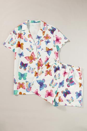 • 4. Cozy Escapism: Let your imagination take flight with our multicolor butterfly pattern short sleeve pajama set. Designed for all-night comfort, it's perfect for staying cozy during any season.
