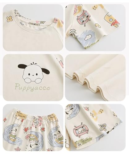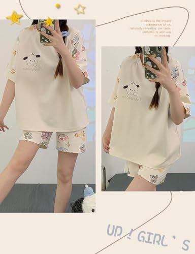 Cartoon Printed Pajamas Set Petite Women Girls Short Sleeve Sleepwear Nightwear Shirt and Shorts 2 Piece Lounge Sets 4