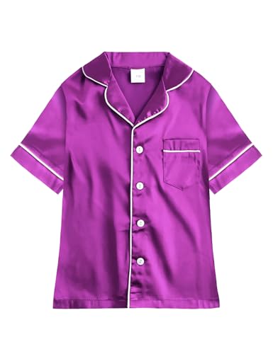 Domusgo Girls' Pajama Sets Size 4t 5t Purple Button Down PJ Set Satin Silk Loungewear Kids Summer Sleepwear 7