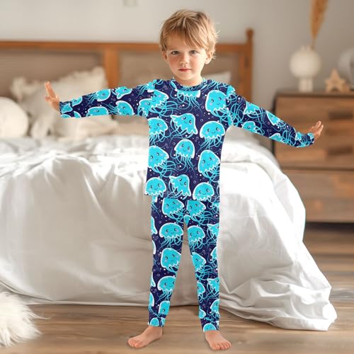 Cute Jellyfish Pajama Sets Long Sleeve Top with Pants Cotton Soft Sleepwear 2 Piece Pjs Set, 8 Years Old 2