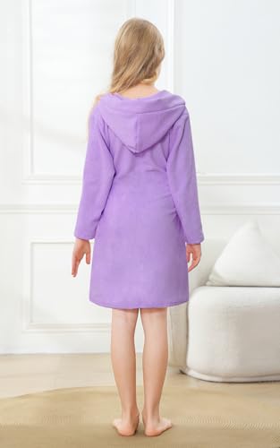 Umeyda Boys Girls Robe Soft Towel Cotton Hooded Bathrobe Kids Terry Cloth Robes with Belt, Purple, 4T = Tag 120 5