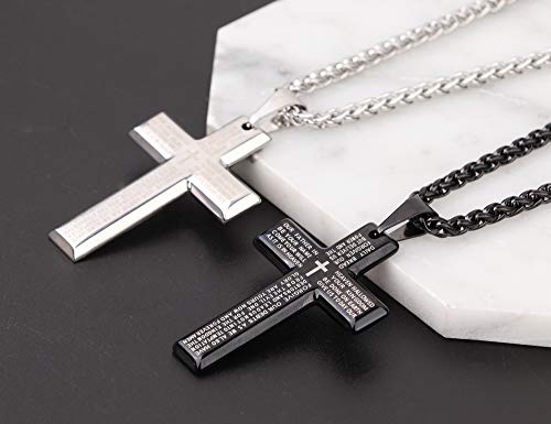 LOYALLOOK 2pcs Men's Stainless Steel Silver Black Tone Cross Pendant Lord's Prayer Necklace 24 Inch 4