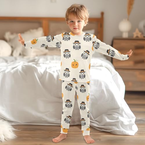 Pajama Sets Long Sleeve Halloween Owls with Pumpkin Soft Comfy Sleepwear 2 Piece PJS 3-8T 2