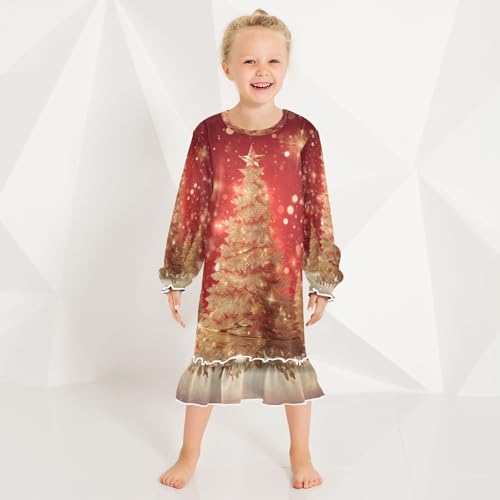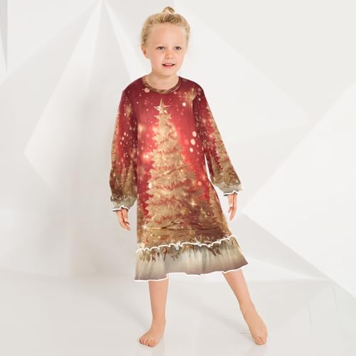 Bolaz Nightgowns Sleepwear Lightweight Nightdress Soft Pajamas Dress Christmas Gold Trees for 3-10 Years 1