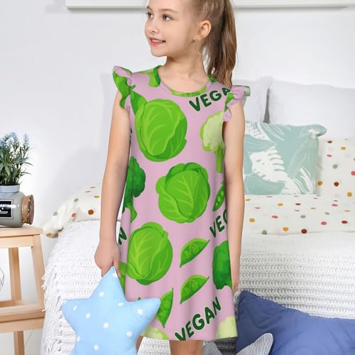 Flutter Sleeve Nightgown Pajama Gown Broccoli Vegan Green Easy Pull-On Sleepwear Nightdress 3