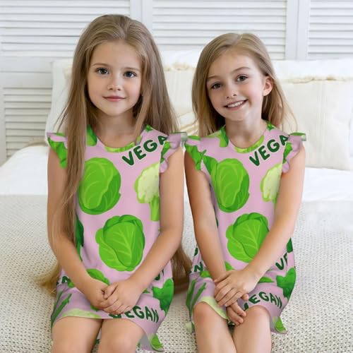 Flutter Sleeve Nightgown Pajama Gown Broccoli Vegan Green Easy Pull-On Sleepwear Nightdress 5