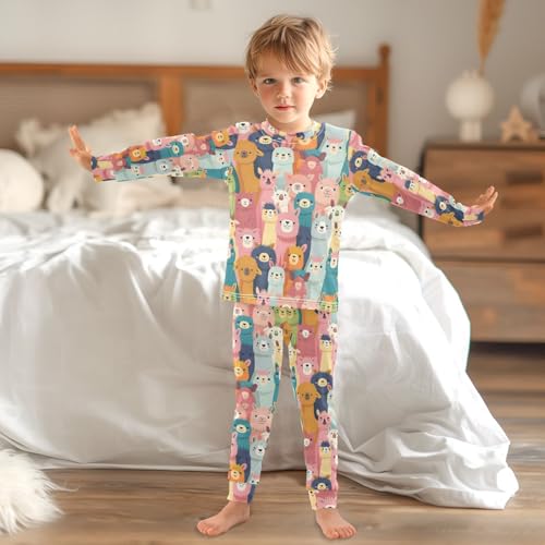 ALAZA Colorful Alpaca Llama Cartoon Pajamas Long Sleeve Sleepwear 2-Piece Pajama Set 3