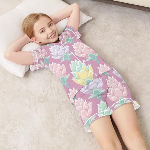 Satin Pajama Sets Short Sleeve Floral Pattern with Soft Artichoke Button Down Silky Nightwear 2 Piece PJS 5-14Y 5
