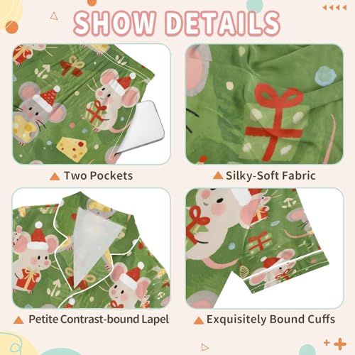 Satin Pajama Sets Short Sleeve Christmas Mice with Cheese Button Down Silky Nightwear 2 Piece PJS 5-14Y 1