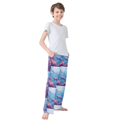 Pajama Pants Sleep Pants Soft Elastic Waist Pajama Lounge Pants Shark Coral for 6-14 Years Old 6