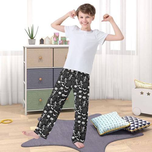 Pajama Pants Sleep Pants Soft Elastic Waist Pajama Lounge Pants Black White Skull for 6-14 Years Old 4