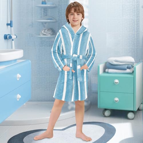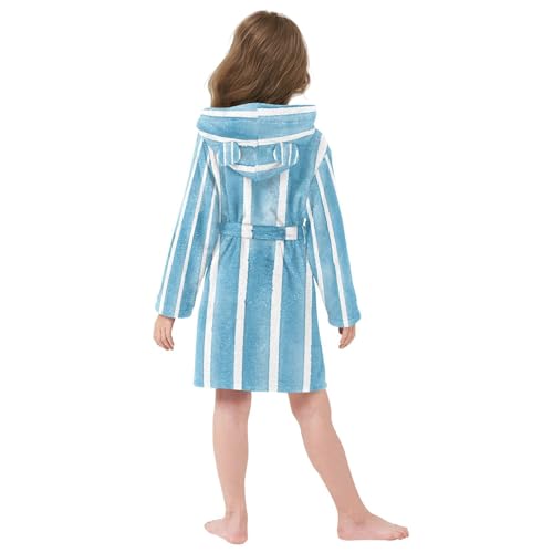 GuoChe Teal Blue Stripes on White Kids Robes Girls Hooded Robe For Kids 6