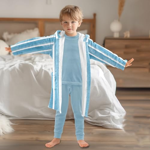 GuoChe Teal Blue Stripes on White Kids Robes Girls Hooded Robe For Kids 5
