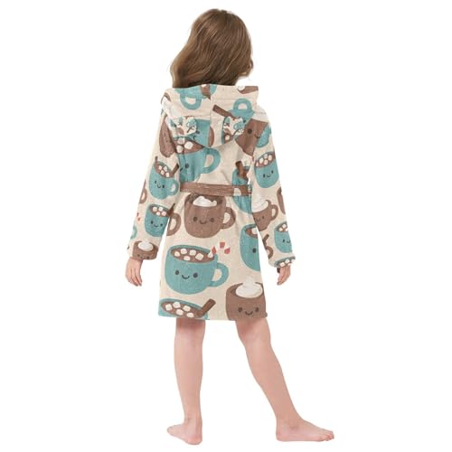 Kids Bath Robe Girls Hot Cocoa Pattern Hooded Robe For Kids 6