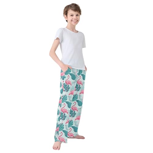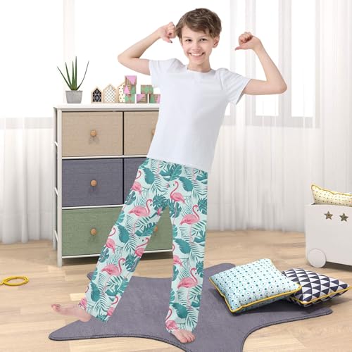Tropical Leaf Pink Flamingo Pajama Pants Lounge Sleep Pants Elastic Waist Long Pajama Bottoms with Pockets for 6-14 Years 7