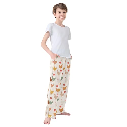 Rooster Cartoon Pattern Pajama Pants Lounge Sleep Pants Elastic Waist Long Pajama Bottoms with Pockets for 6-14 Years 7