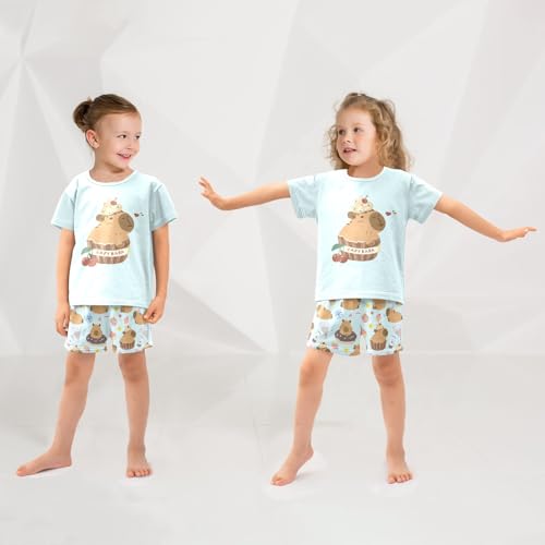 HOT ! Cupcake Capybara Blue Summer Cute Pajama Sets, Short Sets for Daily Wears and Sleep Wears