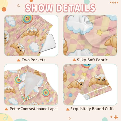 Satin Pajama Sets Short Sleeve Cute Croissant and Lollipops Button Down Silky Nightwear 2 Piece PJS 5-14Y 7