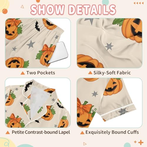Satin Pajama Sets Short Sleeve Pumpkin Pattern with Bats Stars Button Down Silky Nightwear 2 Piece PJS 5-14Y 2