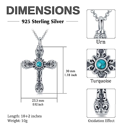 SIMONLY Cross Urn Necklaces for Ashes 925 Sterling Silver Turquoise Obsidian Opal Necklace Memorial Keepsakes Cremation Jewelry for Ashes for Men Women Loved Ones 4