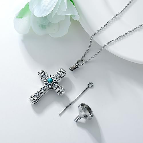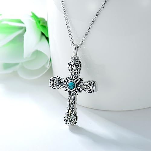 SIMONLY Cross Urn Necklaces for Ashes 925 Sterling Silver Turquoise Obsidian Opal Necklace Memorial Keepsakes Cremation Jewelry for Ashes for Men Women Loved Ones 5
