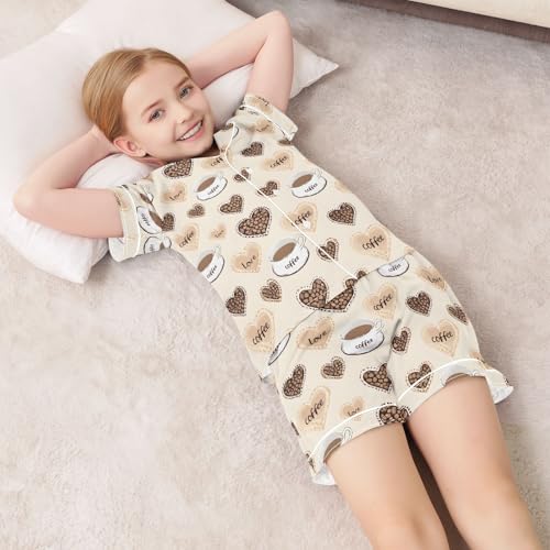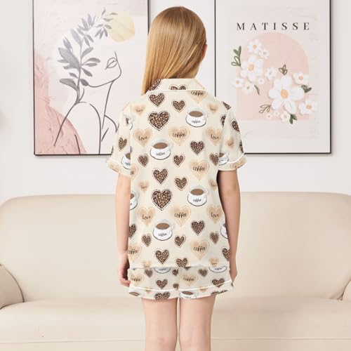 Brown Coffee Cups Love Pajamas Set Summer Button Down Sleepwear Pjs Sets Comfy Loungewear 4