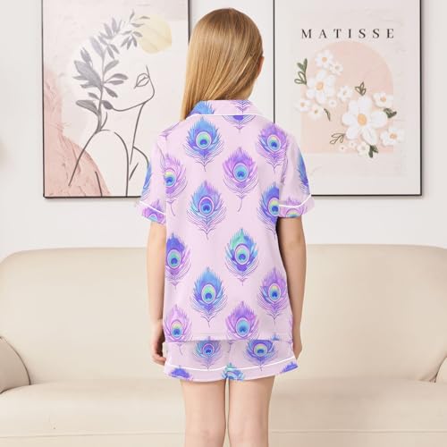 Pastel Watercolor Peacock Feathers Pajamas Set Summer Button Down Sleepwear Pjs Sets Comfy Loungewear 5