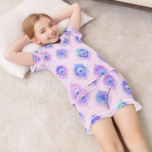 Pastel Watercolor Peacock Feathers Pajamas Set Summer Button Down Sleepwear Pjs Sets Comfy Loungewear 6