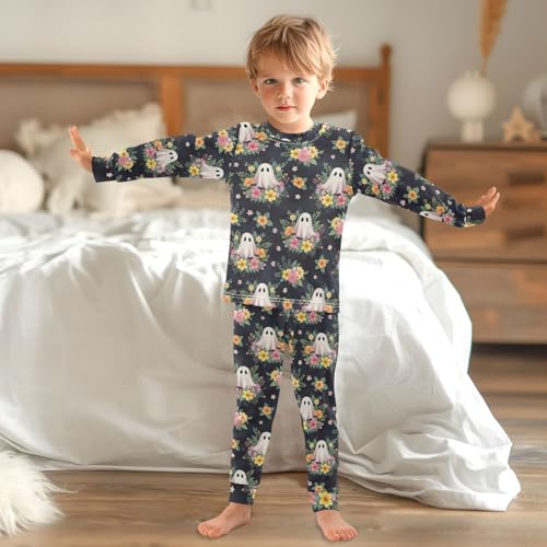 Pajama Sets Long Sleeve Ghost Floral Pattern Soft Comfy Sleepwear 2 Piece PJS 3-8T 2