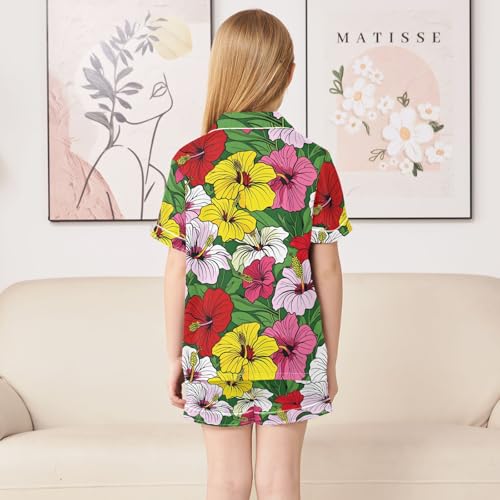 Multicolor Hibiscus Summer Pajamas Set Soft Satin Pjs Sets 2 Piece Short Sleeve Sleepwear Casual Clothes 2