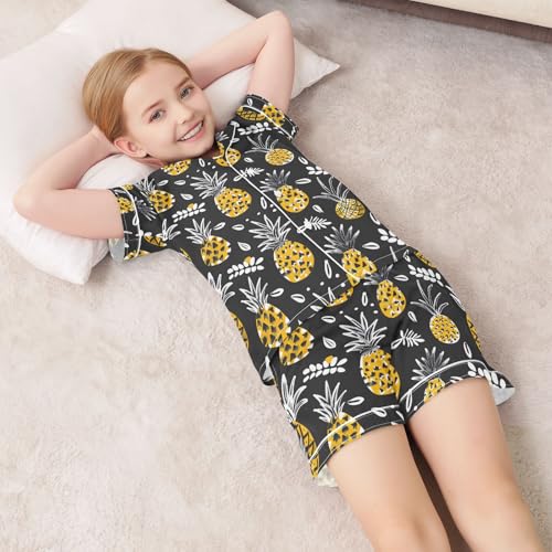 Pineapples and Leaves Pajamas Set Summer Button Down Sleepwear Pjs Sets Comfy Loungewear 3