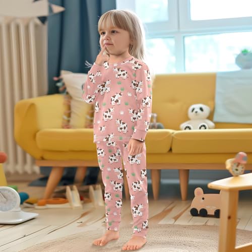 Pajama Sets Long Sleeve Cows on Pink Background Pattern Soft Comfy Sleepwear 2 Piece PJS 3-8T 2