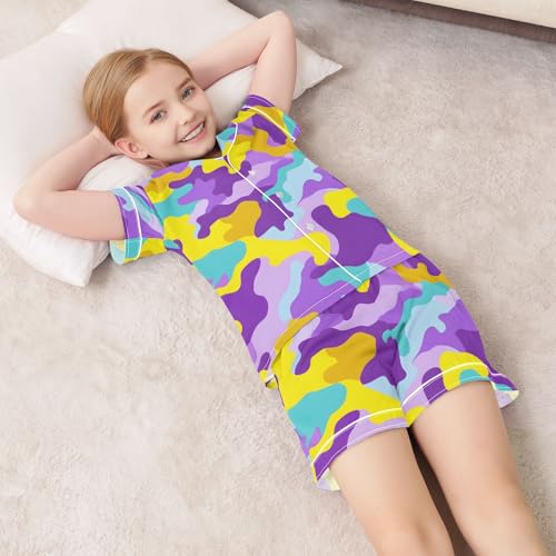 Satin Pajamas Summer 2 Piece Loungewear Casual Camo Sleepwear Silk Pj Set for 5-14 Years 5