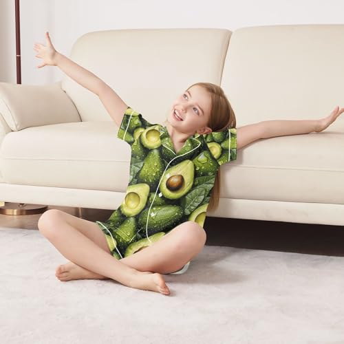 senya Avocado Fruit Satin Summer Pajama Sets Silk Short Sleeve Button Down Sleepwear 6