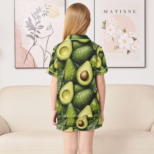 senya Avocado Fruit Satin Summer Pajama Sets Silk Short Sleeve Button Down Sleepwear 4