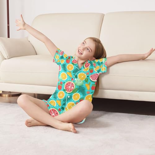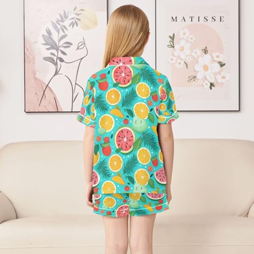 senya Fruit Slices Satin Summer Pajama Sets Silk Short Sleeve Button Down Sleepwear 6